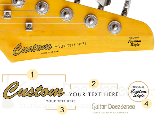 Custom Made Headstock Decal. Scale Custom Waterslide Decals. Browse through the selection of guitar waterslide decals or contact us to make a custom waterslide decal for you.